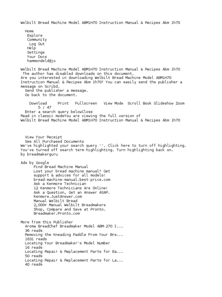 A blog about the welbilt bread machine and manuals. Best welbilt bread machine recipes from welbilt bread machine blog model abm4000 find the. Welbilt bread machine model abm500 instruction manual & recipes abm 500 free instruction manual & recipes for the breadmaker titled find any welbilt breadmaker manual here. Welbilt abm1l23 bread maker machine welbilt bread machine maker manual &, recipes (abm600) appliances. The welbilt bread machine can make many different types of bread.