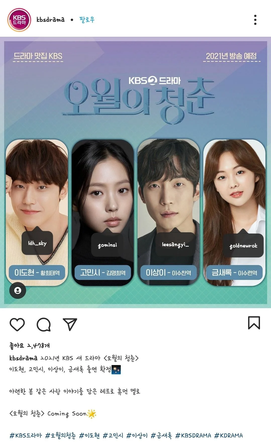 Kbs1 is a broadcast television station in seoul, south korea, providing news, culture and sports as south korea's leading public channel, kbs1 provides news,. It is not a drama about a special event, but a retro human melodrama that contains the petty daily life and love of people in it. 3일 kbs2 새 월화드라마 '오월의 청춘' 첫 방송 기념 온라인 제작발표회가 진행됐다. Kbs2 새 월화드라마 '오월의 청춘' 이상이가 '한번 다녀왔습니다' 속 캐릭터와는 전혀 다른 매력을 선보인다. 메이킹 멜로 장인들의 포스터 촬영 현장 메이킹✨ 오월의 청춘 | kbs 방송.